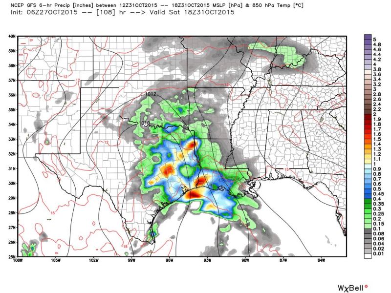 One big rain event behind, and another looks to be on the way. While there are slight timing and intensity differences between the GFS and ECMWF forecast models, the next Gulf Coast rain-maker is pegged for Halloween. Treaters will be greeted with tricks in the form of showers and thunderstorms.