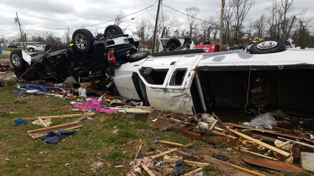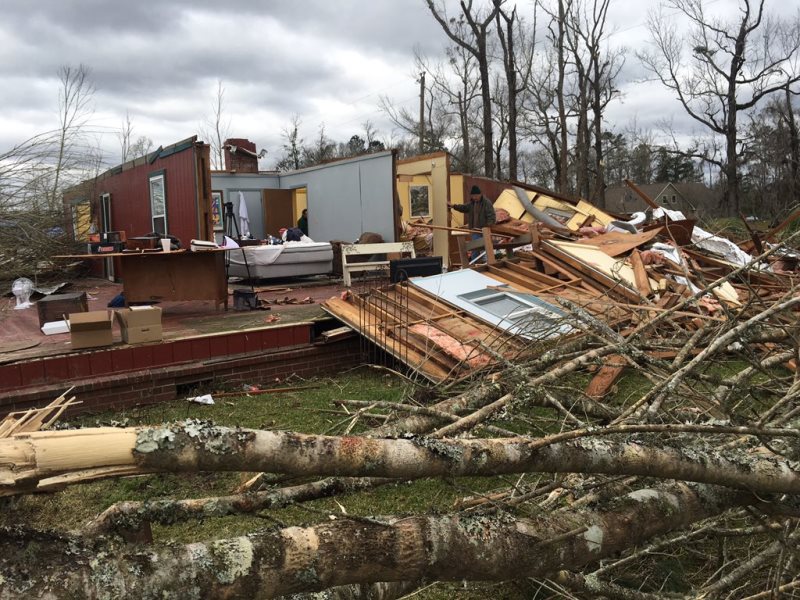 Tornado began in a wooded area between Grantham and McLin Roads southwest of the city of Livingston. The tornado snapped multiple trees and produced minor roof damage on one home with a rating of EF-1 as it crossed McLin Road. The tornado continued northeast and began intensifying and expanding in width. As it reached Circle Drive the tornado began producing EF-2 damage. One home on Circle Drive and another on West Railroad Street had their roofs removed with exterior walls remaining intact. A gooseneck car or tractor hauling trailer was lifted, flipped and set down on top of large storage containers. Many trees in this general area were either snapped or uprooted. The width of the tornado at this point was approximately 325 yards. The tornado continued northeast over a wooded area until reaching North Willow Street. This is the location where it is believed the tornado was at its strongest intensity and widest width. A home’s roof was completely torn off with most exterior walls still standing. The top half of the chimney was completely gone. The only room with a sheetrock ceiling somewhat still intact was the bathroom. All trees had some damage varying from being uprooted or snapped. One uprooted softwood tree was approximately 4 feet in diameter. A rating of EF-2 with 125mph winds was given at this point based on home construction damage and tree damage. The width at this point was 625 yards or over 1/3 of a mile. All houses in the vicinity of the main home damaged had some sort of roof damage but on EF-1 scale. The tornado continued northeast and began weakening. Numerous trees were uprooted as the tornado crossed North Doyle Road near Edgar Mizell Road producing EF-1 damage with speed rating of 95 mph. The tornado dissipated shortly northeast of this point with no other damage found.