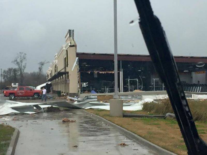 Tornado touched down just before the Gold`s Gym. Damage to the gym was from the metal roof peeling back exposing the exterior wall to the force of the wind pushing it down. The tornado then crossed HIGHWAY 61 and hit several businesses doing roof and siding damage. The garage doors were pushed in a local car mechanic shop and knocked over the Popeye’s Chicken sign. The tornado continued into a residential area damaging roofs, sheds, and patios. All of the damage was rated at EF-0.