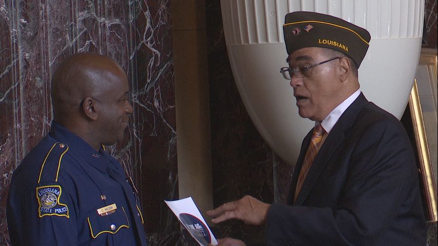 At the Capitol, a display highlighting Louisiana veterans was set up in Memorial Hall. Among those names was 104-year-old Elmo Sholes, a Morganza native who served in World War II.