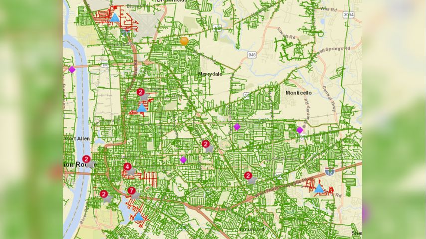 About 4,000 of those outages were reported in East Baton Rouge Parish Monday night. According to outage maps, many customers in the garden district were out of power, along with some in the Istrouma neighborhood and on South Harrell's Ferry Road.
