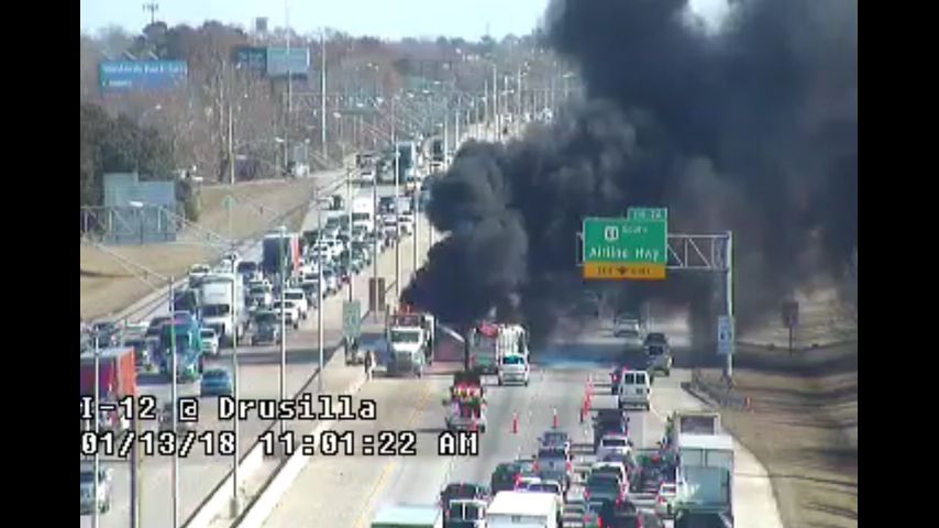 18-wheeler fire blocks multiple lanes on I-12 near Airline Hwy.