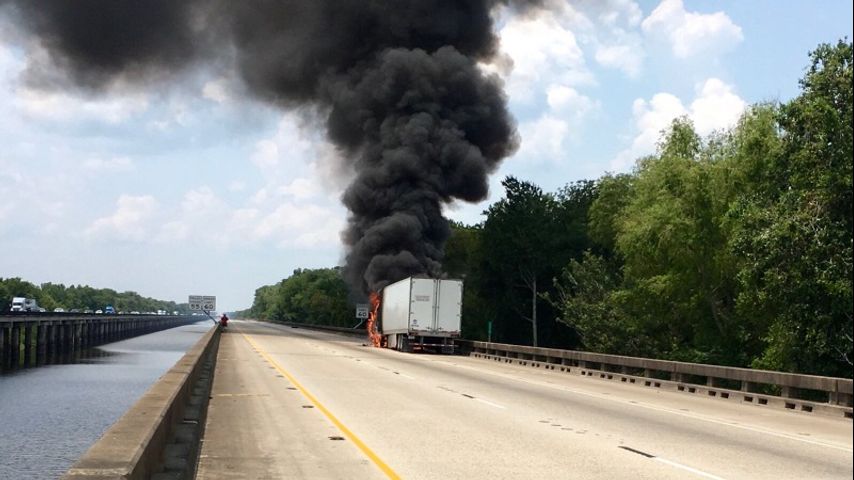 I-10 West now open following 18-wheeler fire on Basin Bridge