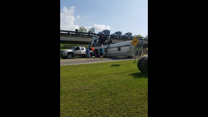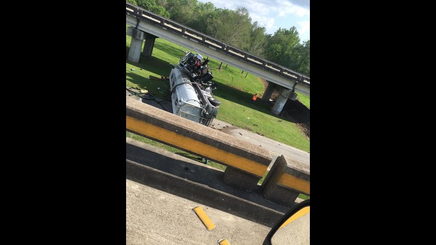 Jason Thibodeaux, a DOTD worker who was heading home from Baton Rouge, saw the truck crash into the guard rail before crossing both lanes and driving over the inside barrier.