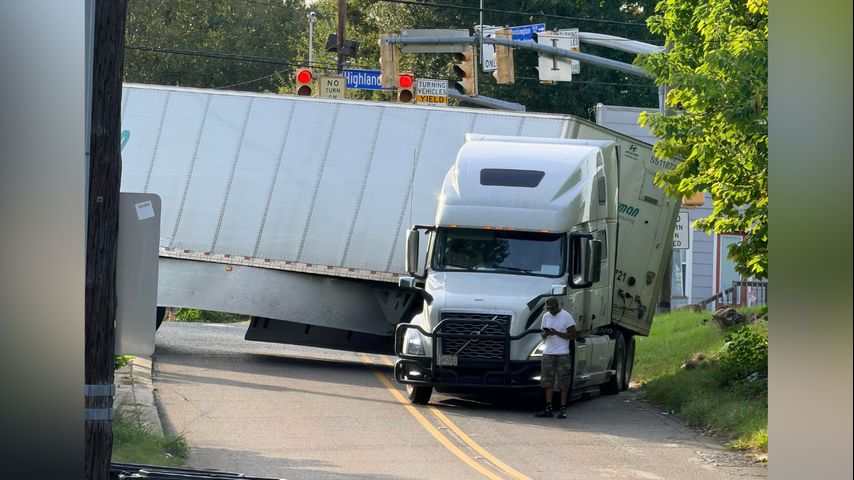 18-wheeler gets stuck while turning onto Washington Street off Highland Road