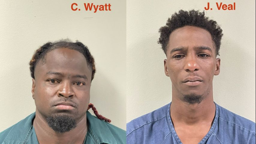 The Jeanerette Police Department said 39-year-old Christopher Wyatt and 24-year-old Joe Veal were taken into custody after their vehicle was spike-stripped by law enforcement.