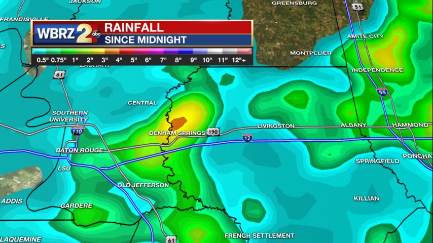 The WBRZ Weather Team says that radar estimates 2 to 4 inches of rain fell in that area late this afternoon.