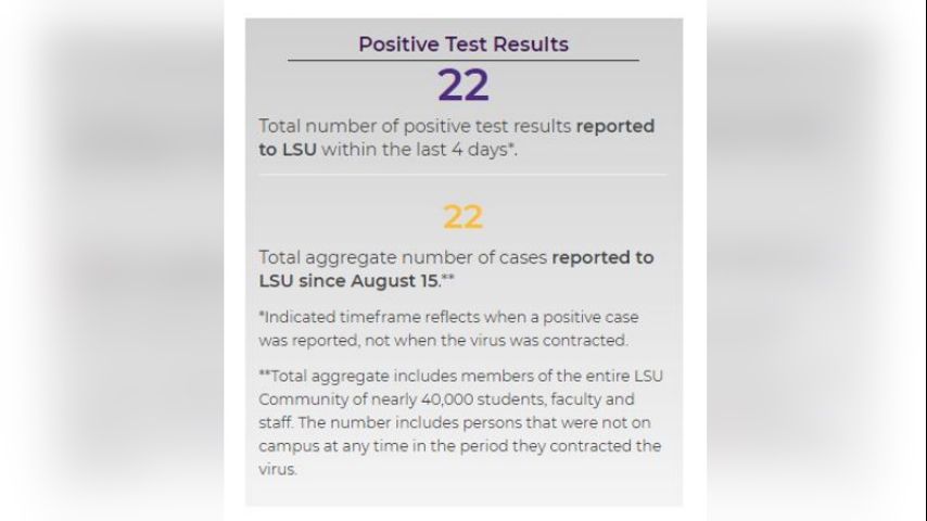 LSU reported nearly two dozen coronavirus cases since Saturday, Aug. 15. The university said the number covers the "entire LSU community," including those who were not on campus when they contracted the virus.