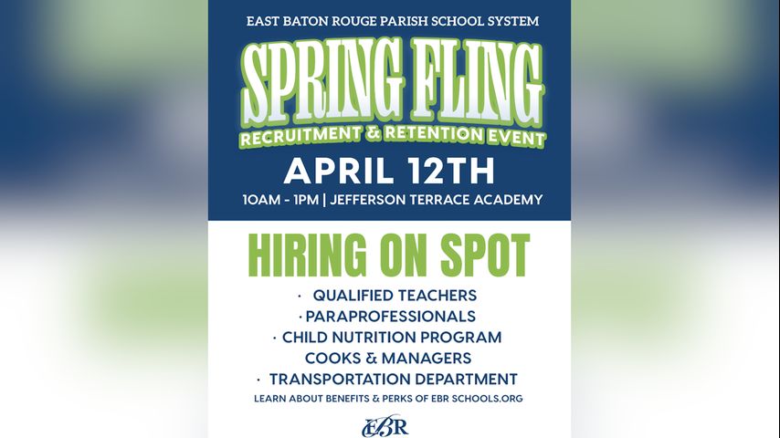 BATON ROUGE - Saturday, the East Baton Rouge Parish School System will host its annual Spring Fling, a hiring and retention event.