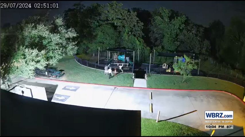 East Baton Rouge Sheriff's Office said the suspects damaged playground property and broke a handle to a shed door. One of the three teenagers turned himself in Wednesday morning.