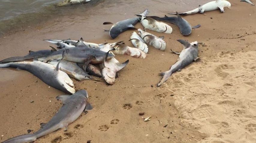 “Horrified! Not expecting something like that,” said Sabrina Rios in an interview with Fox10, who happened across the shark carnage while visiting her friend. ”They were all about two-to-three feet and they were just all piled on the beach here.”