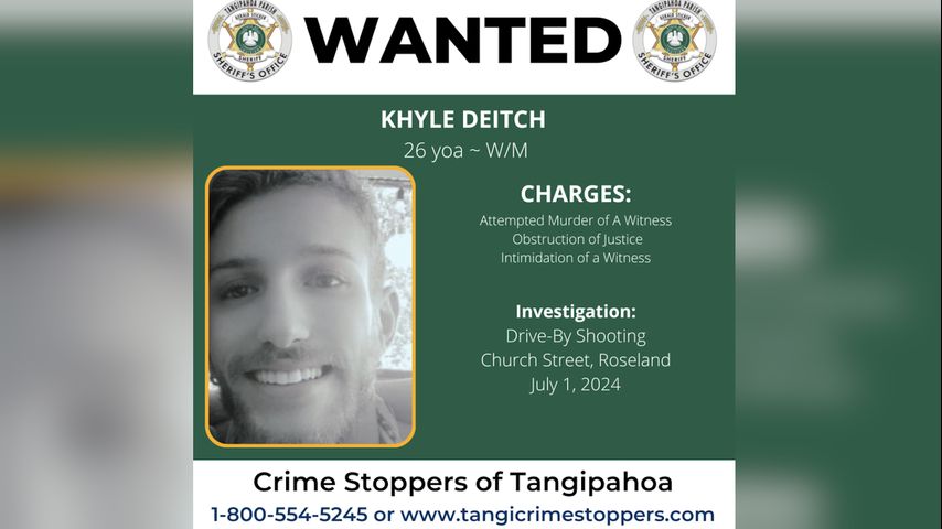 Anyone with information about Deitch's whereabouts to contact the Tangipahoa Parish Sheriff's Office Criminal Investigations Division at 985-902-2045.