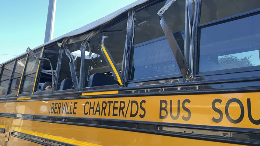 The Addis Police Department said the single vehicle crash happened after the bus driver turned into the parking lot of The First Bank of Addis and hit the roof of the building. This caused the passenger wall and roof of the bus to sustain severe damage while 14 students from Iberville Charter Academy were on board.