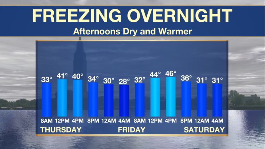 Up Next: Use cation on Friday morning just in case any leftover wet spots are frozen very early. The afternoon temperatures will be well above freezing and will melt away problem spots. Friday afternoon will be in the upper 40s and low 50s. Friday night into Saturday morning will be the last night in the forecast with freezing temperatures, down in the 20s. Over the weekend we will see a significant warm-up with temperatures in the upper 50s on Saturday and upper 60s on Sunday. A chance for rain returns to the forecast early next week. Temperatures will continue to climb into the upper 60s as well. Click here to see the 7-day forecast.