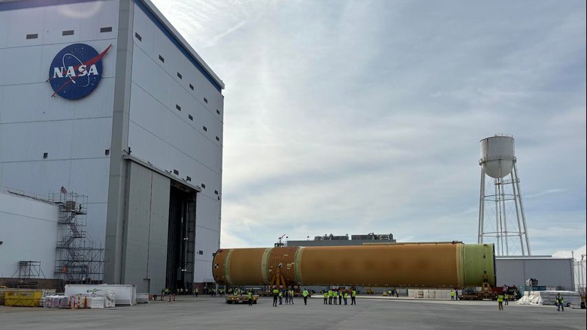 "This is the first time we've rolled out without a complete rocket," said Chris Cianciola, NASA deputy program manager. "We found out it was better and faster, we're trying to get into speed, to do the final outfitting of the rocket in the vertical orientation. The only place we had to do that was at KSC."
