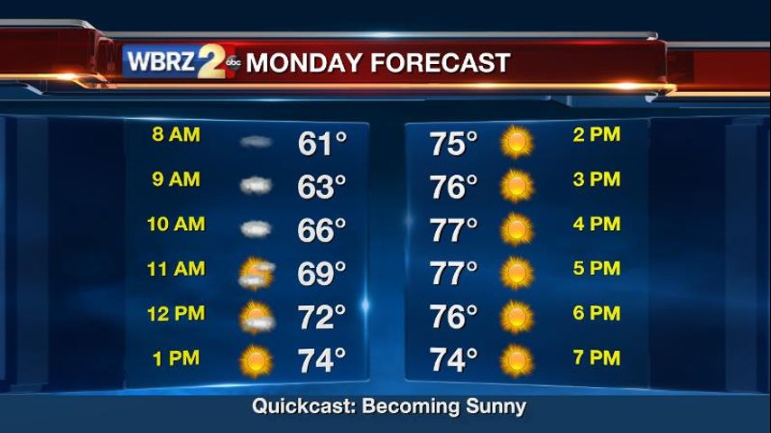 Looking Ahead: Tuesday will be partly sunny with a high in the upper 70s. Winds will turn around to the south allowing a bit of humidity to come back as well. Into Wednesday, clouds will build up, which should keep fog to a minimum. Scattered showers and thunderstorms are then in the picture through week's end. Stay in touch with the forecast for Wednesday and Thursday as severe storms are possible. Highs will be in the mid to upper 70s with lows in the mid 60s.