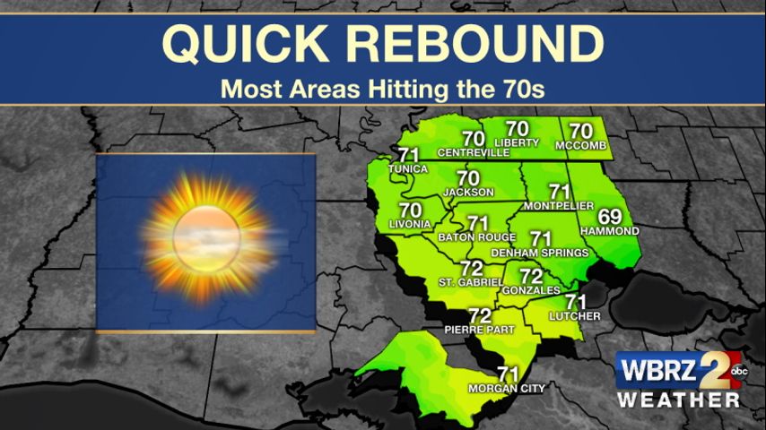 Up Next: Tuesday afternoon will bring temperatures in the mid-70s and more sunshine. Wednesday will bring temperatures in the upper 70s. The warming trend will impact overnight temperatures too. We will wake up in the 50s on Wednesday and Thursday. By Thursday afternoon temperatures will hit the low 80s and we will wake up in the 60s on Friday morning. A few scattered showers will be possible on Saturday and Sunday. Temperatures will still be near 80 degrees. Click here to see the 7-day forecast.