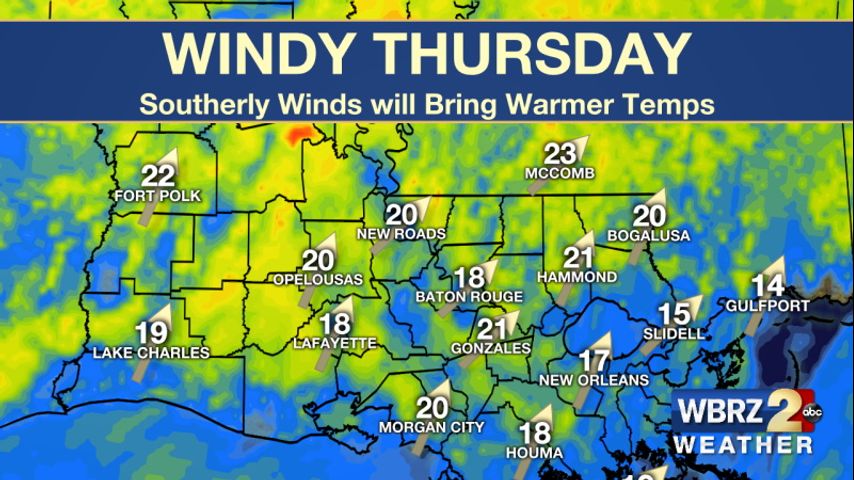 Up Next: The warm Gulf air will come packed with moisture and that will help to build clouds in our area on Thursday. By Thursday afternoon, we will have mostly cloudy skies and temperatures in the low 70s. Showers will move in overnight. The most active time for showers in the Baton Rouge area will be between 11 pm Thursday and 1 am Friday. A cold front will be pushing showers through quickly, and the entire viewing area will clear early on Friday morning. Friday afternoon will be cloudy with temperatures in the 60s. On and off showers are expected to return Saturday and will continue into Sunday as well. Click here to see the 7-day forecast.