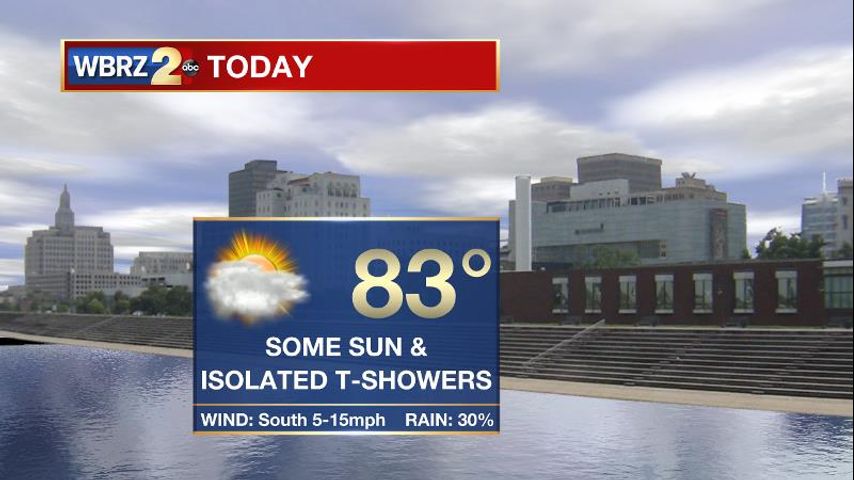 Today and Tonight: Your Monday will bring partly sunny skies. Isolated showers and thunderstorms are possible, but widespread and heavy action similar to Saturday is not expected. The best chance for rain will come in Southwest Mississippi. Within the 13 Parish, 3 County forecast area, 30 percent will pick up measurable rain. High temperatures will climb into the low 80s with south winds of 5-15mph. Overnight, look for partly cloudy skies and lows in the mid 60s.