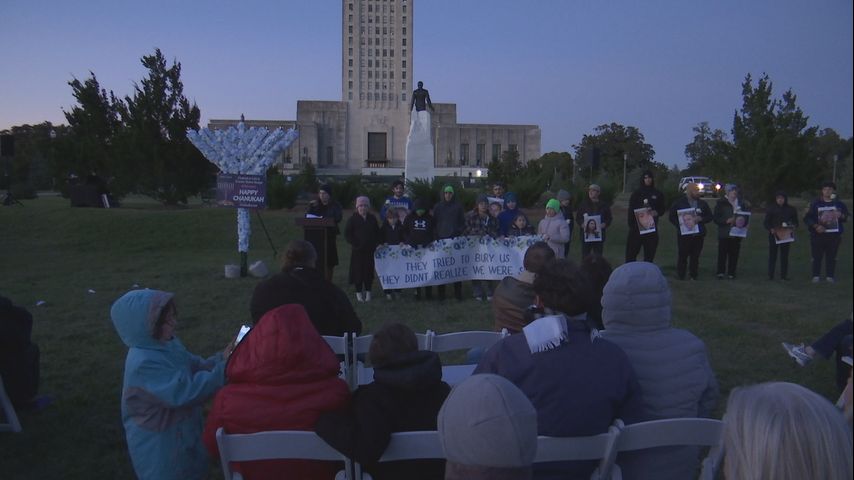 BATON ROUGE - Dozens gathered outside the State Capitol on Sunday evening for the lighting of the first candle, marking the start of Hanukkah.