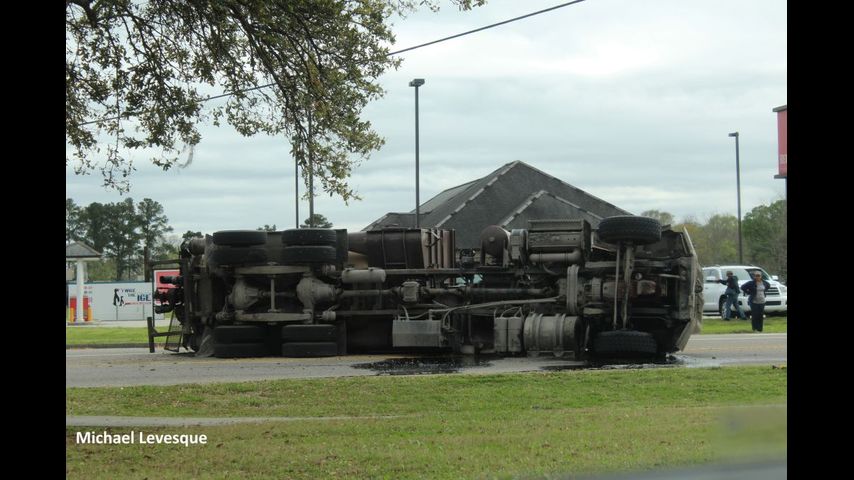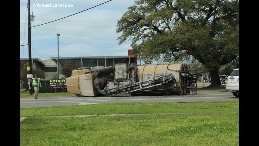 An 18-wheeler flipped at the intersection. The crash blocked traffic around the time nearby Dutchtown High School was dismissing.