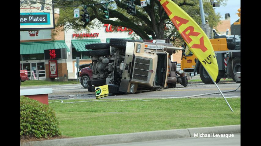 PHOTOS: As school dismissed, major intersection closed due to overturned truck