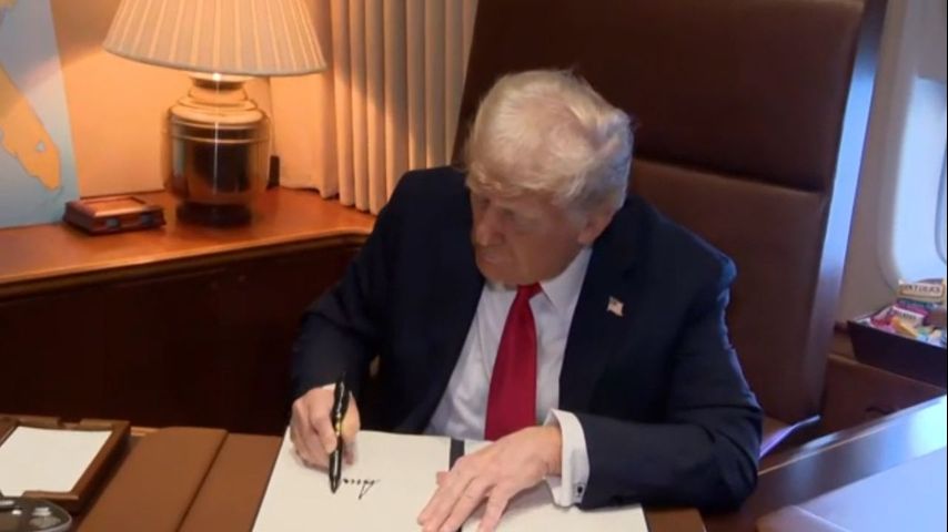 President Trump was onboard, signing an executive order to make Sunday, Feb. 9, 2025 the first Gulf of America Day while the plane was above the water.