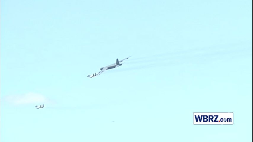 The flyover included two B-52 Stratofortresses assigned to the 2nd Bomb Wing and F-15 Strike Eagles from the 159th Fighter Wing based at Naval Air Station Joint Reserve Base New Orleans.