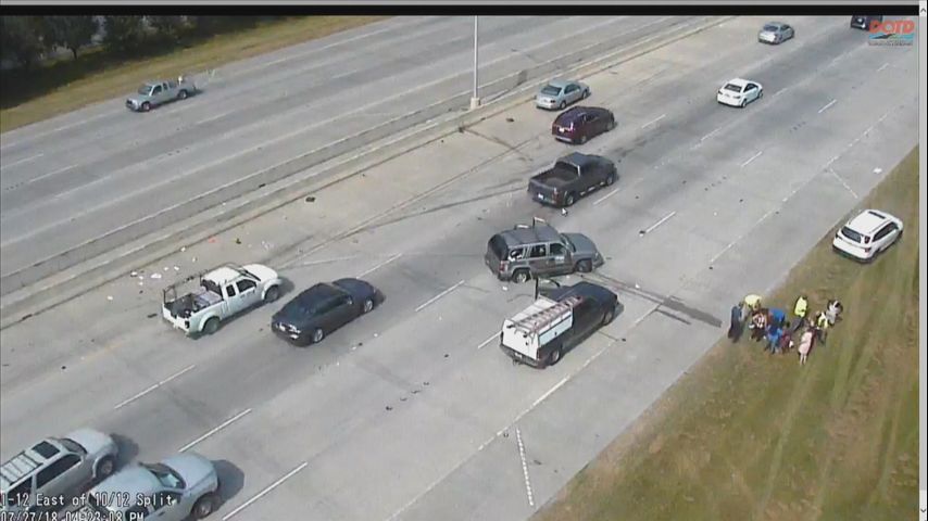 The crash happened before 4:30 p.m. DOTD cameras near the scene showed an SUV in the middle of the roadway, and a group of people standing off the shoulder of the road.