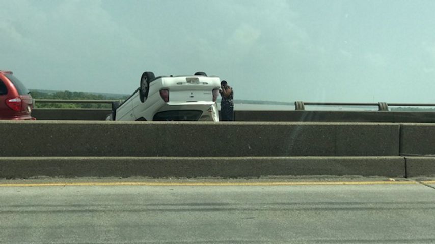 All lanes open on Mississippi River bridge after car overturns