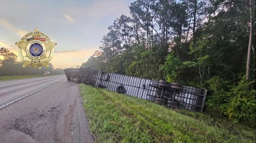 LIVINGSTON — An 18-wheeler overturned in a single-vehicle crash on I-12 Eastbound early Sunday morning, according to the Livingston Parish Sheriff's Office.