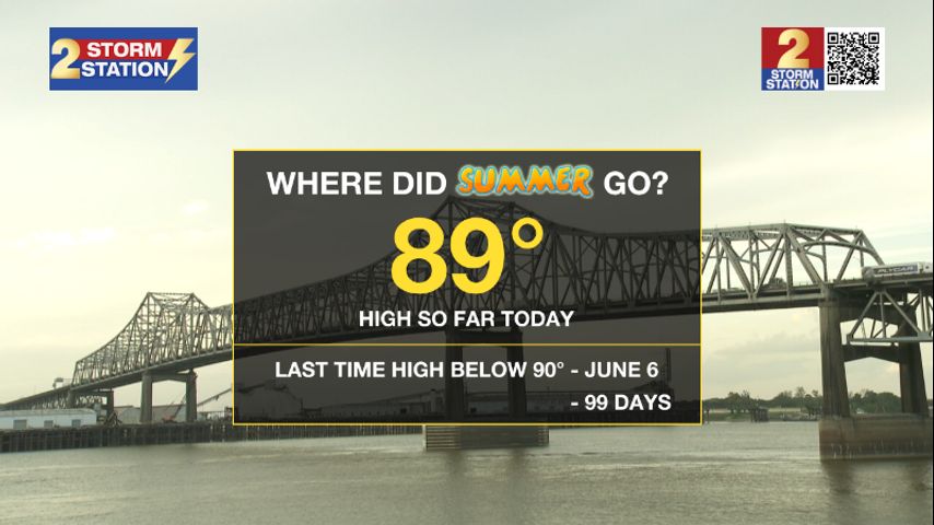 For the first time in 99 days, Metro Airport in Baton Rouge failed to reach a high temperatures of 90 degrees or higher. At 89 degrees, Thursday saw the lowest high temperature since June 6.
