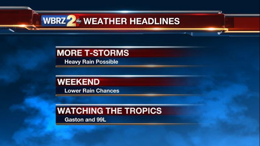 Up Next: Friday through Monday we can expect lots of sunshine, heat and humidity. High temperatures will run for the low to mid 90s with overnight lows in the mid 70s. Many will have an opportunity to dry out or perhaps continue the flood cleanup, but do note that the unrelenting summer heat means hydrating and frequent breaks will be a good idea. As far as showers and thunderstorms go… rain coverage around the 13 Parish, 3 County forecast area will be around 20 percent, with the best chance south of I-10.