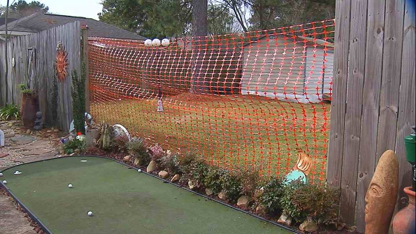 Courville says multiple requests for a repair date have gone unanswered. She says she's tired of looking at people walking along with her fence line, smoking cigarettes, walking their dogs or parking. The eight-foot fence that once stood there protected her property and blocked the view of the complex. Now she can see right through the orange plastic netting.