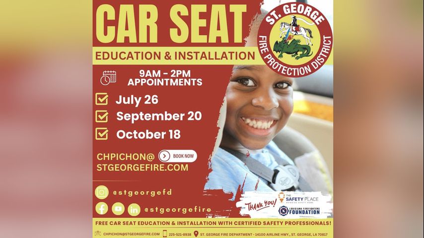 ST. GEORGE - There are still appointments available for car seat education and installation from the St. George Fire Department.
