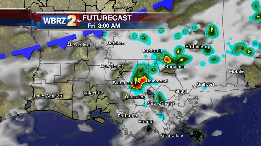 Up Next: Friday will begin near 70 degrees with mostly cloudy skies and scattered showers. A front will continue to fizzle over the area through the day bringing an end to rain chances from north to south. It does look as though afternoon sun will return bringing highs back into the mid 80s. The weekend will feature mostly sunny afternoons with highs in the mid 80s and lows in the low 60s.