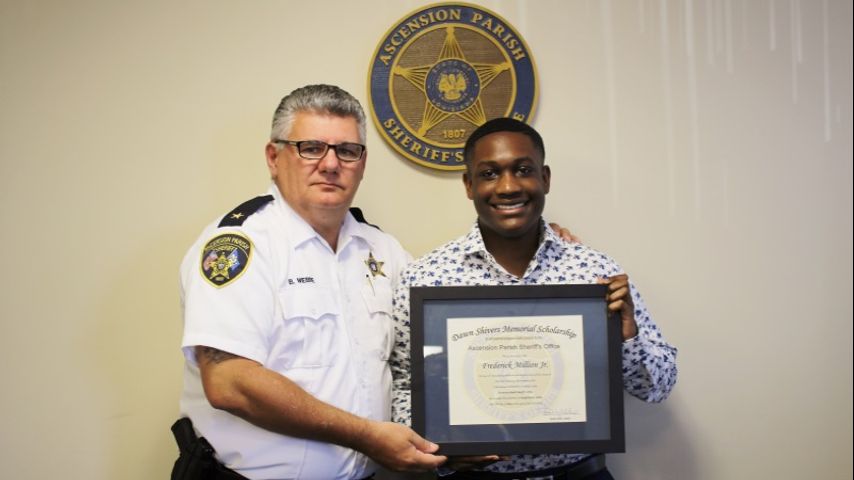 The recipient of the Dawn Shivers Memorial Scholarship is East Ascension High School student Frederick Million Jr., according to the sheriff's office. The scholarship is named after an APSO employee.