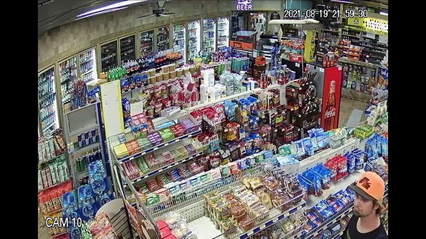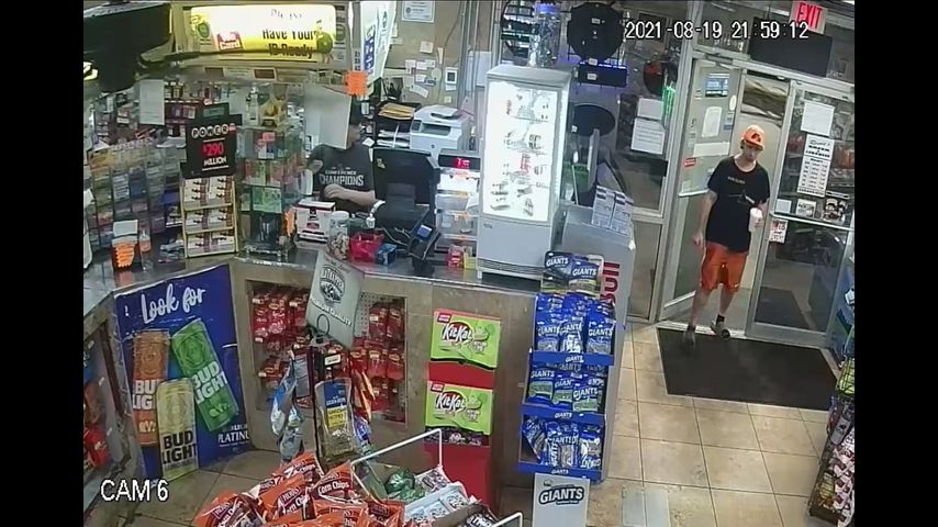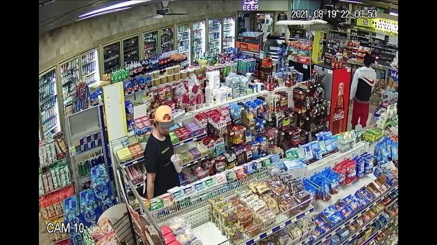 Surveillance video shows the suspect stealing a wallet unknowingly left by the victim from the counter of Rende's convenience store located at Highway 44 and Highway 621.