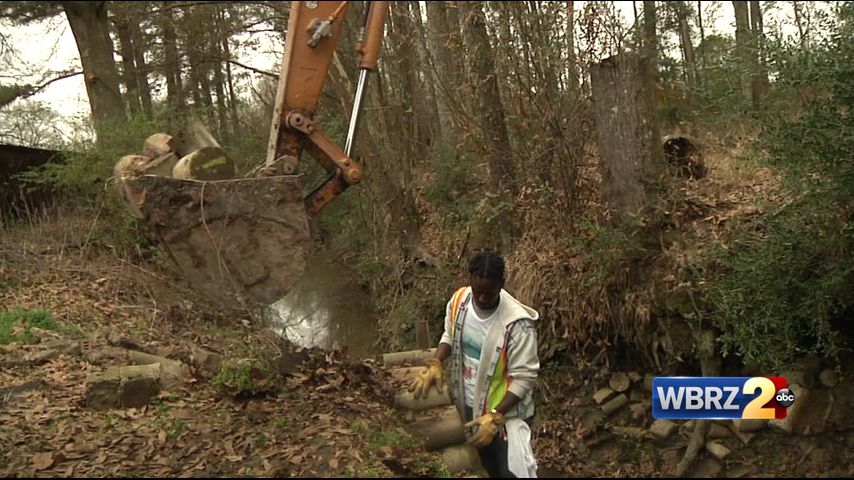 City workers brought in a backhoe to remove concrete cylinders that were causing a creek to flood a neighborhood. It's a city violation that could land the culprit in municipal court.