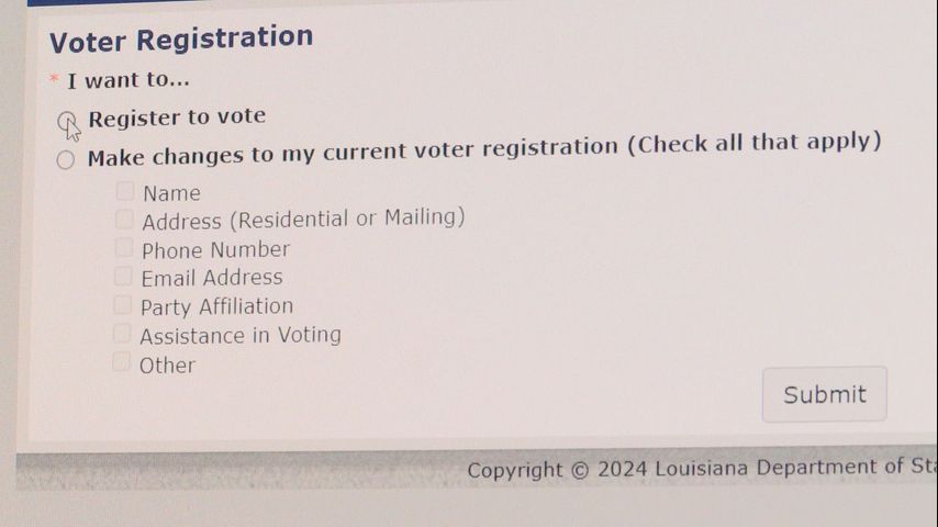 “Make sure you have your Louisiana driver's license or ID. When you go online it's a very simple process, and that information is sent directly to the registrar of voters," Watson said. "They verify that information, and once they verify that information you're registered to vote. You'll get a card in the mail telling you where to vote and the districts you live in.”