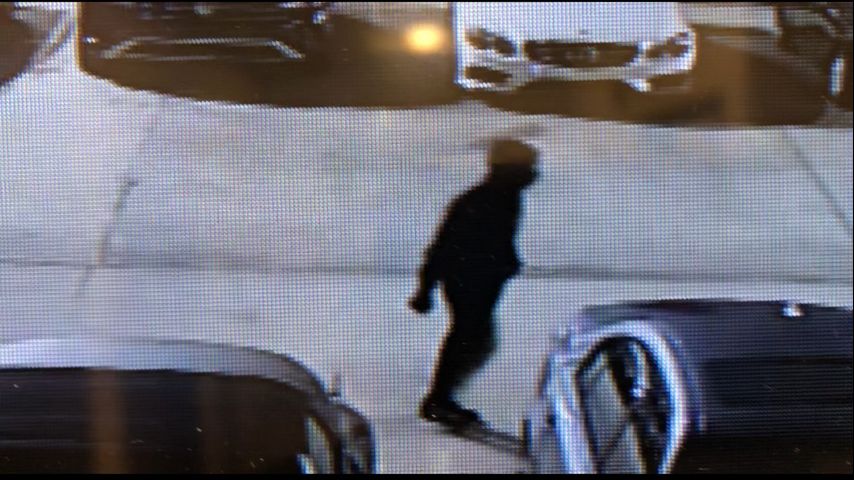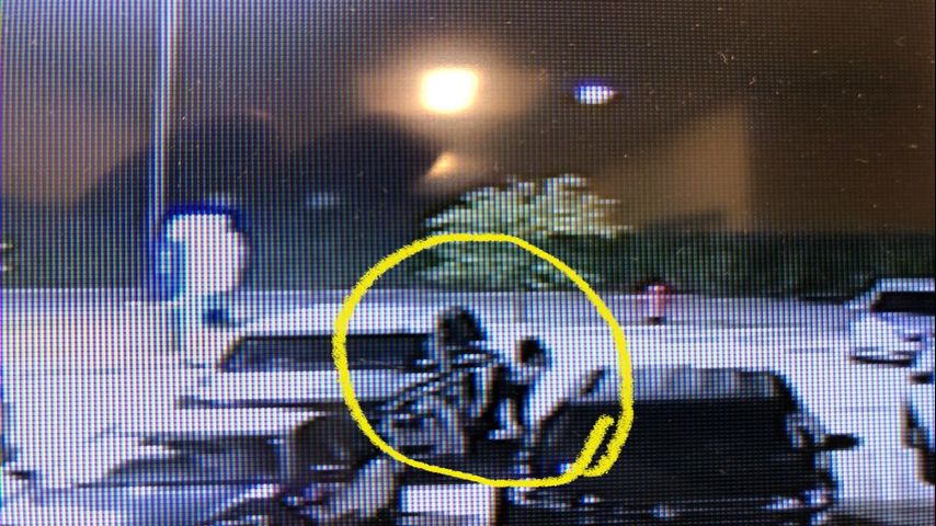 The suspects are seen on surveillance video walking up to vehicles and punching out the windows, removing valuables from the cars.