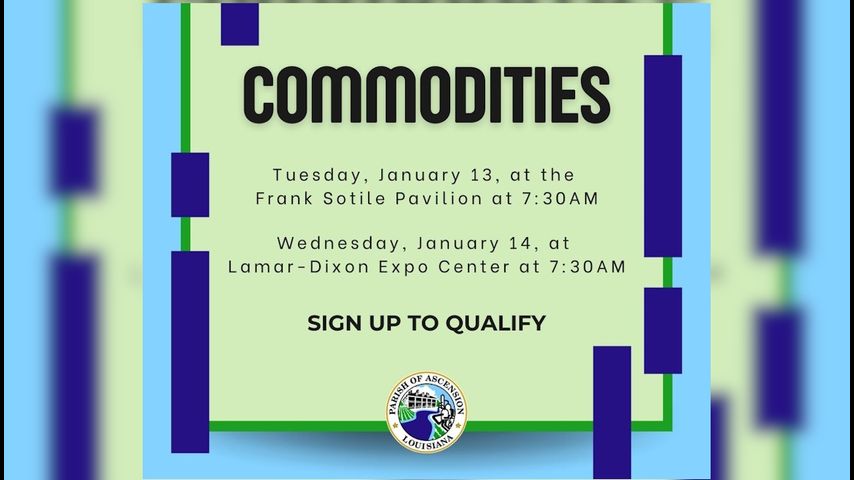 The distribution is taking place at the Frank Sotile Pavilion in Donaldsonville on Jan. 13 and the Lamar-Dixon Expo Center in Gonzales on Jan. 14 starting 7:30 a.m.