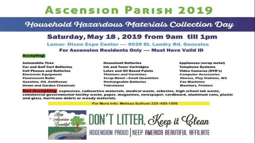 Ascension Parish to hold household hazardous material collection day