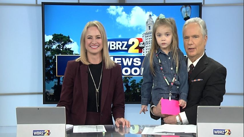 Ashley Fruge's tiny look-a-like visits WBRZ on Halloween