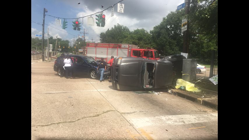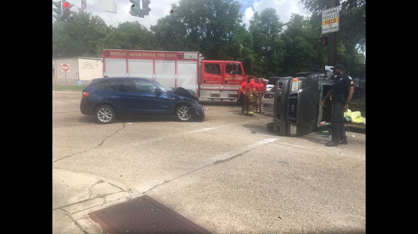 BATON ROUGE – First responders had to rescue people from a morning T-bone crash that flipped a pickup.