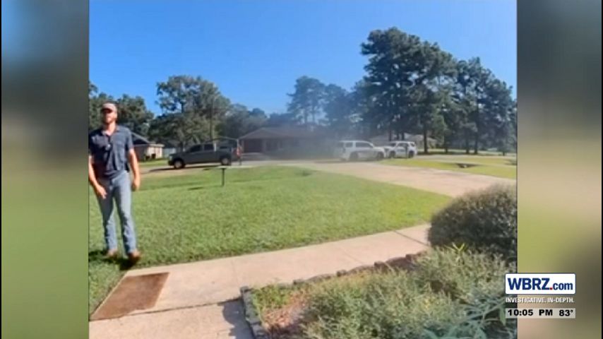 Video recorded from a home on Monday — and broadcast first by WBRZ — shows Kelley walking inside the house and then later pushing 18-year-old Jacob Pea to the ground in the front yard. Sticker said Kelley's actions were not justified, given the lack of a search warrant, and the former deputy's behavior was not aligned with department standards.