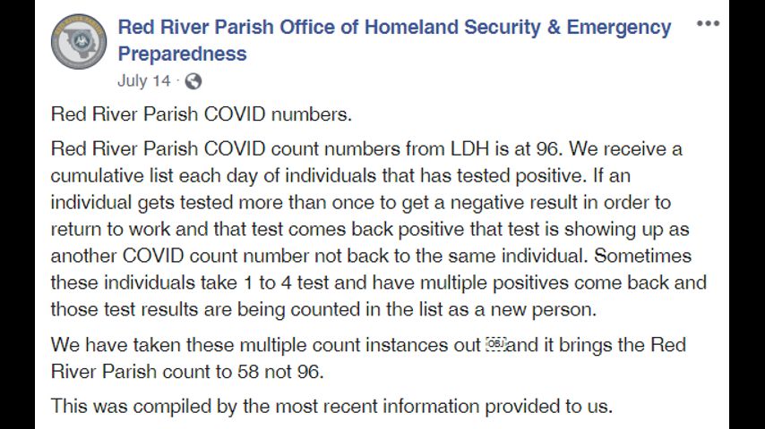BATON ROUGE – A legislative auditor reviewed how the state reports positive coronavirus tests amid complaints from a handful of rural parishes that data may be inflated.