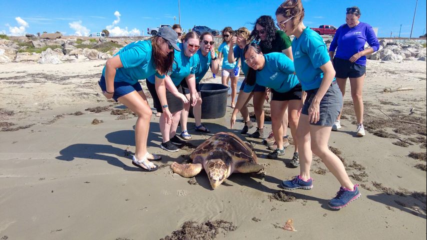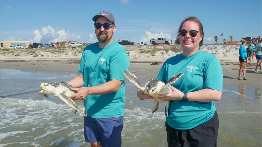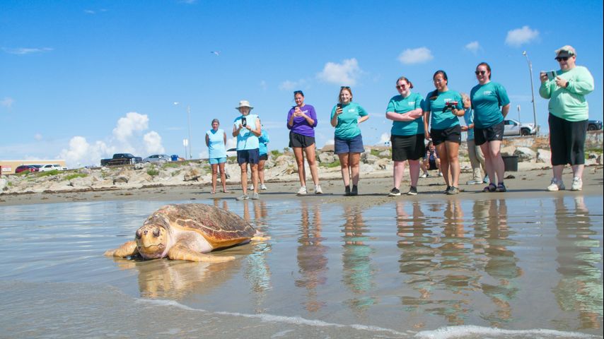 The aquarium released all three happy and healthy turtles into the Galveston waters. Texas was chosen as an ideal release location because both species call the Gulf waters home, according to the aquarium.