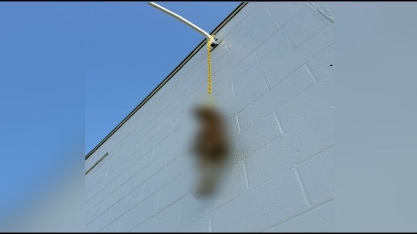 "It was hanging from this thing off the side of the building," he said. "By it's neck."