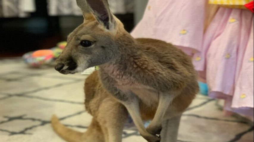 According to WLOX the baby kangaroo, named JoJo, was in the area as part of a mobile petting zoo. Cody Breland, JoJo's owner, runs Wild Acres Wildlife Photography and Mobile Petting Zoo.